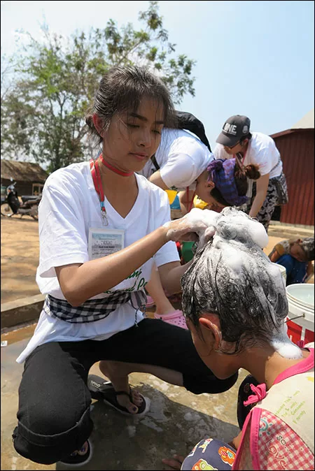 The second was visiting remote villages. The participants separated into three groups, visited different villages and held vacation bible study. Around one hundred children gathered and they played games and sang songs. Even though everyone spoke different languages, somehow their hearts connected and they were able to become friends. They also taught them about sanitary awareness, such as washing hands. The program also included delousing for the children. At first, the participants were hesitant about washing the children’s hair but through doing this, they learned a valuable lesson in leadership. As one of the participants reflected, “As it is said, “I am a person who rescues the oppressed”, that day we took action. I felt helping other people is challenging but also a joyful thing.”