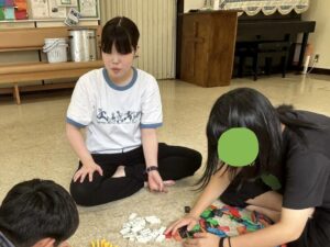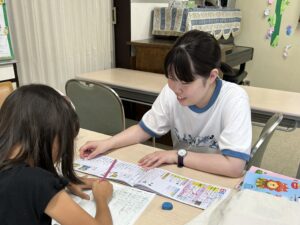 インターンでは主に2つの働きをしていました。1つ目は学習支援です。学習支援は夏休み中なら午前中、学校がある日は平日の放課後に子どもたちの宿題を見て、分からないところを教えていました。ただ子どもたちに教えるだけではなく、子どもが勉強しやすい環境を整えたり、子どもたちがやる気を引き出す声掛けなどを考えるよう心がけました。2つ目は遊びの支援です。遊びの支援は子どもたちと一緒に遊んだりしていました。遊ぶことも大切ですが、その中で何を子ども達に学ばせるかも考えます。その他にも掃除をしたり、窓の網戸を治したりと園の環境を整えたりする働きもしていました。