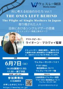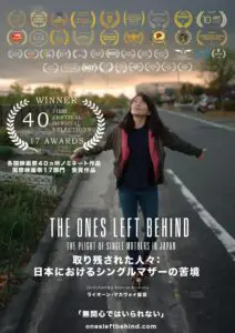 今回は、ドキュメンタリー映画「THE ONES LEFT BEHIND:The Plight of Single Mothers in Japan/取り残された人々:シングルマザーの苦境」を上映します。